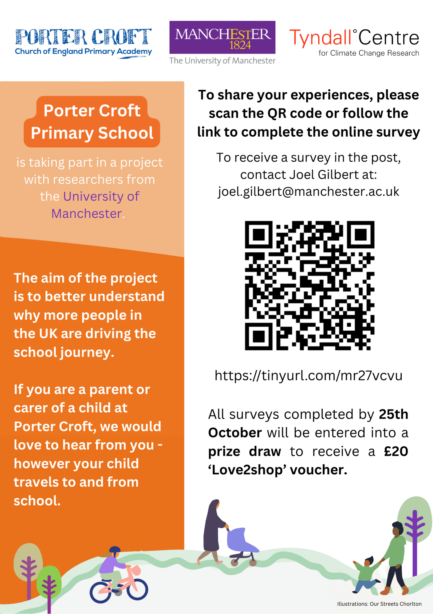 Porter Croft is taking part in a project with Manchester University which aims to better understand why people drive on their journey to school. Please take the time to complete the online survey.